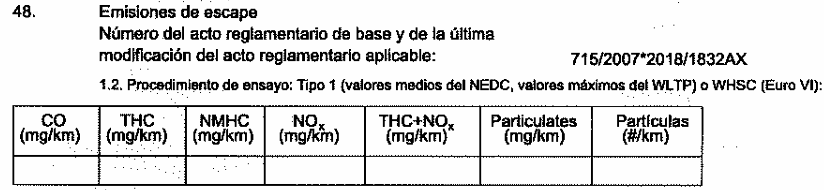 - Referencia a Directivas europeas (por ejemplo, 715/2007/EC). También visible en los primeros números del código VIN, relativos al año de fabricación.
